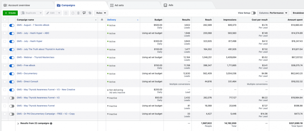 We launched a variety ebook campaigns, documentaries, webinars – all providing information related to the service that their clinic provided: Thyroid & Weightloss treatment for women.