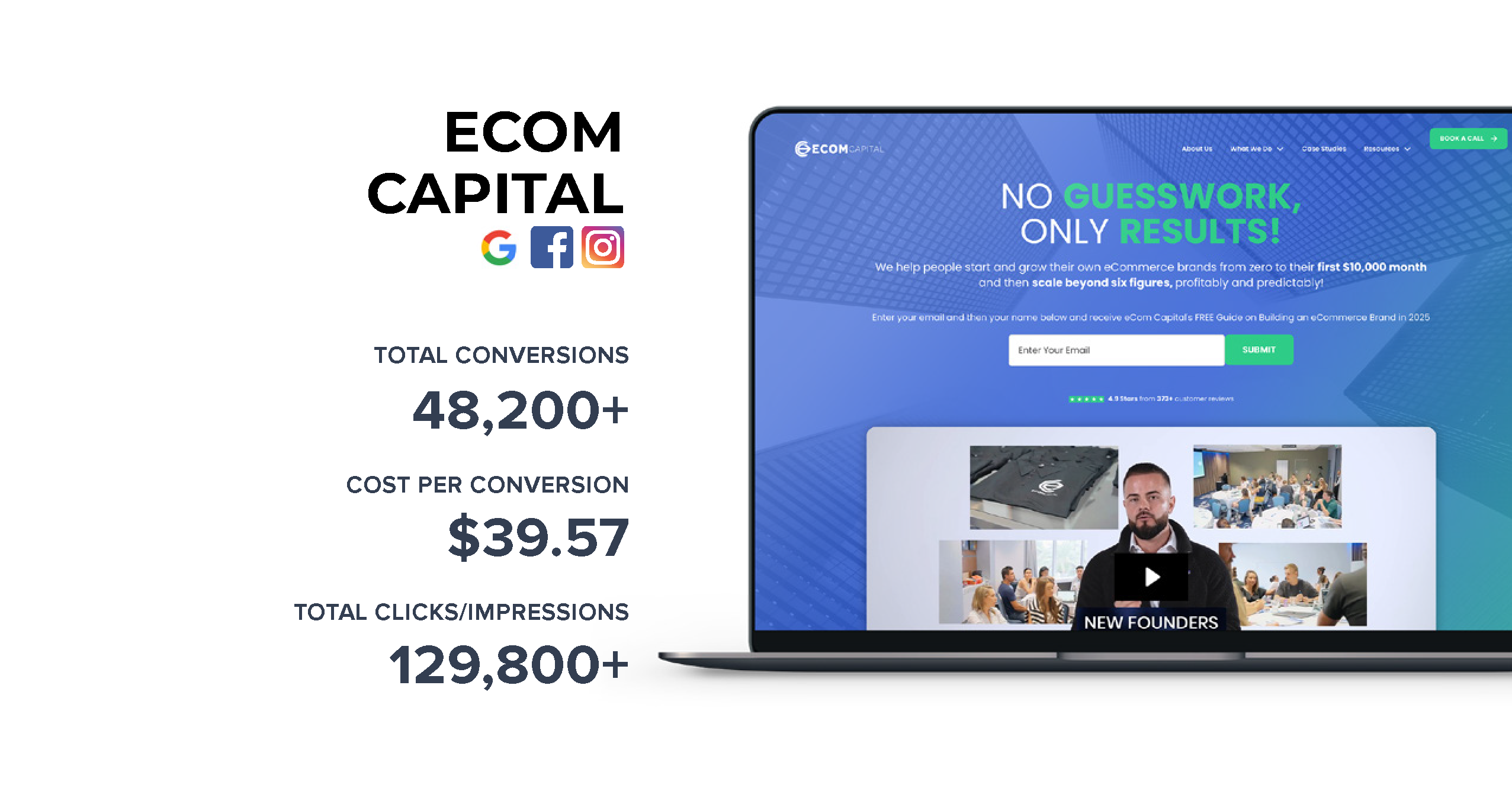 GMS Media Group has been partnering with eCom Capital for over a  year, overseeing the creation and management of their ad campaigns on both META and Google within the performance space. In addition to managing these campaigns, GMS has assisted eCom Capital in developing a diverse range of creative content pieces, which have been effectively utilized in their advertising efforts.